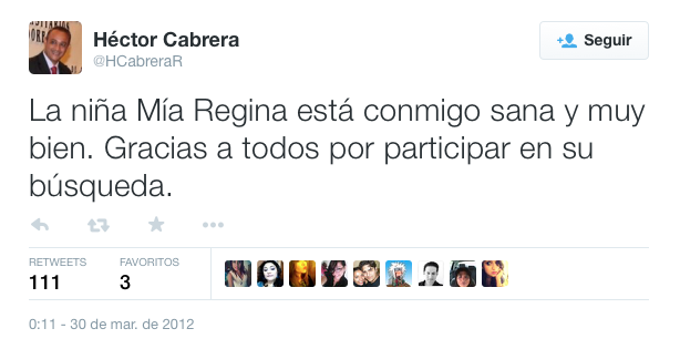 Casos como el rescate de una menor que se encontraba durmiendo en el interior de una camioneta cuando ésta fue robada en Mérida ilustra este proceso en el que tanto las redes sociales como la sociedad jugaron un papel importante para coadyuvar con las autoridades policíacas quienes luego de un operativo logístico exitoso lograron dar con la menor sana y salva en un período muy corto de tiempo.